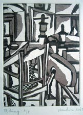 NANDINI GOUD: Daughter of senior and renowned artist, Laxma Goud, obtained her Bachelor's degree in painting as well as her Master's degree in printmaking, from the Faculty of Fine Arts at the MS University in Baroda. Her paintings & graphics reflect her preoccupation with Hyderabad, the place she unequivocally calls home. Her work tries to capture the day-to-day profile of a typical street in Hyderabad. Her works have been sold in auctions held by the world famous auction house, Christie's, and find place in the Herwitz Collection, which is amongst the best of Indian contemporary art in the world today.
